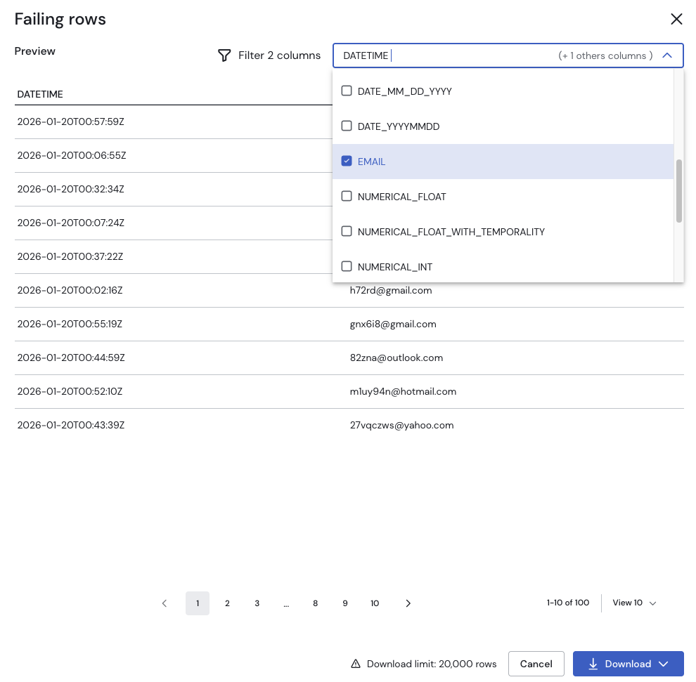 It's possible to select columns to be displayed in the Failing Rows preview.