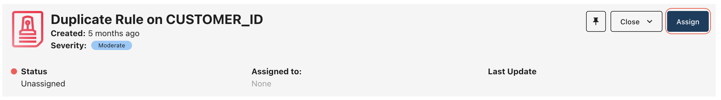 Assign an Owner: In the top right corner, use the "Assignee" dropdown to assign the incident. This ensures clear ownership and notifies the team member via email that they are responsible. Assigned incidents will also appear on that user's personal dashboard.